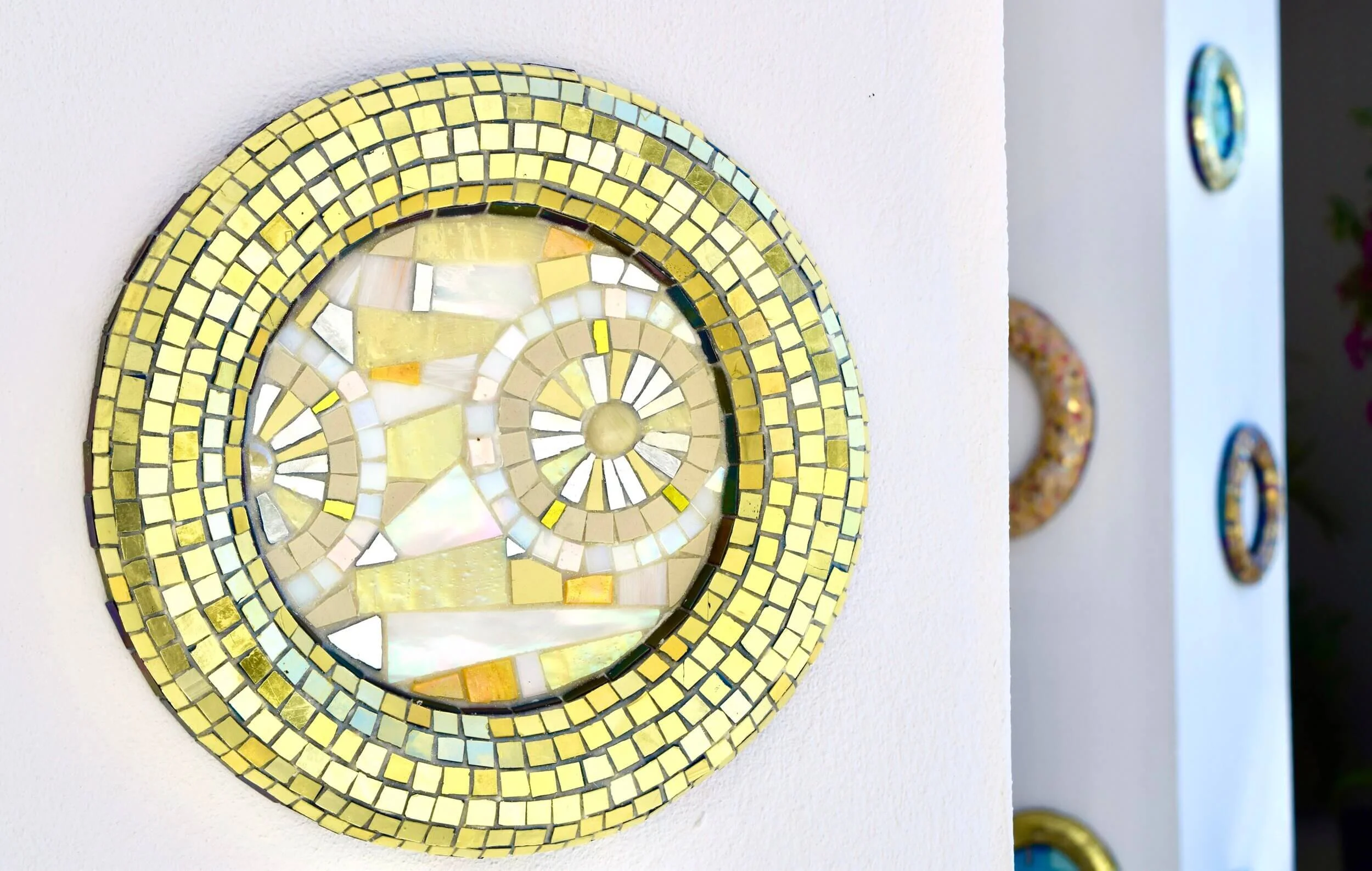 Add year round colour to your garden, patio or pool area with a unique mosaic sculpture or eye catching wall feature.