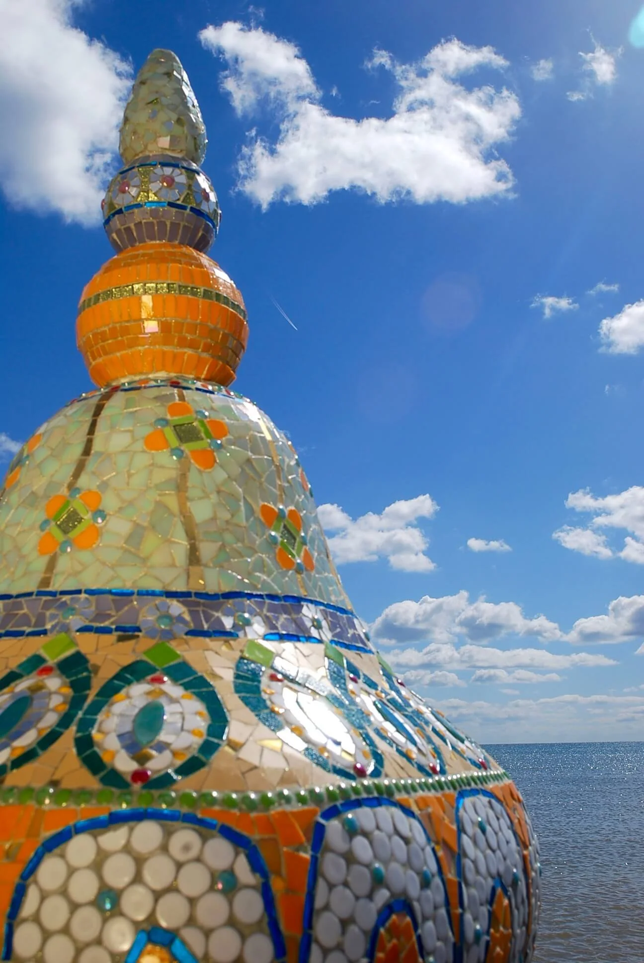 Materials: Vitreous glass and smalti glass mosaic with Venetian gold and silver. Glitter grout.